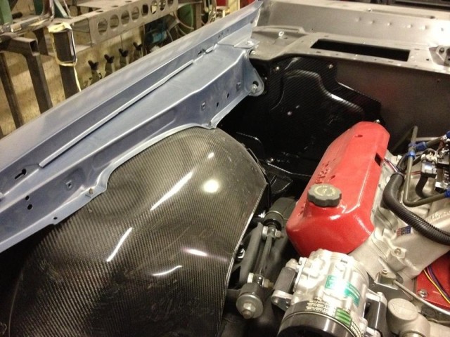 The guys at Kenny Davis Hot Rods installed the Anvil Carbon Fiber Inner Fenders. These inner fenders will allow us
