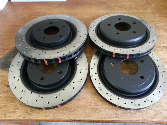 We ordered up a set of cross drilled & vented rotors from Tobin at Kore3 to complete the look on